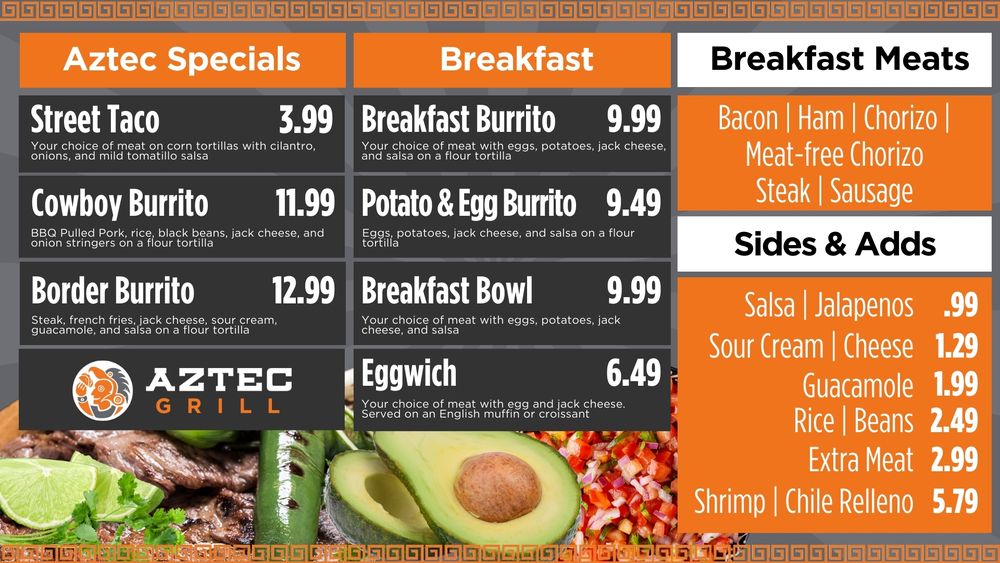 For breakfast lovers, the Breakfast Burritos are a must-try, particularly the popular Carnitas Breakfast Burrito infused with zesty hot oil. The welcoming atmosphere, coupled with amenities such as outdoor seating and delivery options, makes it ideal for families and food lovers alike. Customers rave about the friendly staff and quick service, highlighting Aztec Grill as a hidden gem worth discovering.